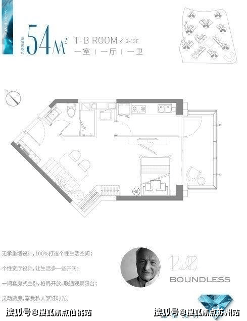 建筑面积约54㎡1房,之前几乎没有同类产品,非常适合预算有限,在市区工作的首套刚需客,约280w+就能上车。