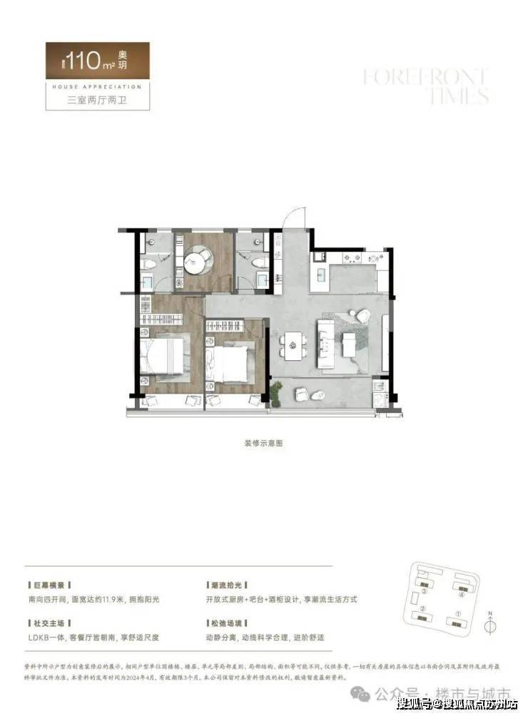 建面约110-137㎡精装空间,以大尺度、大面宽、多飘窗阳台等设计,延伸空间想象。