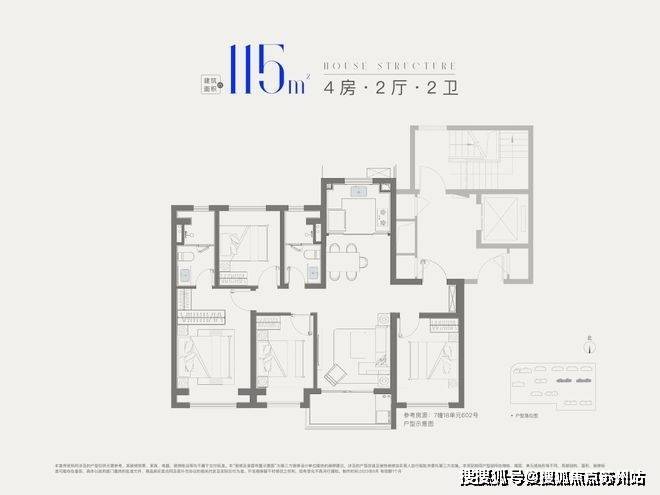 建面约115㎡4房2厅2卫,做到了四开间朝南+全卧室带飘窗+主卧套房设计,一步到位的大四房户型。兼顾大4房的功能性和空间尺度,非常难得,更适合四口之家或三代同堂家庭居住。