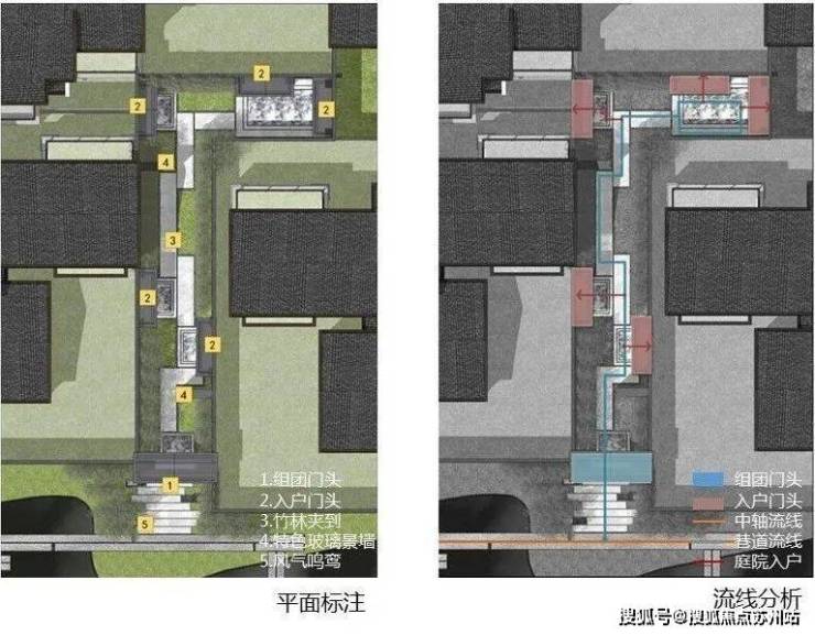 项目遵循传统古镇的规划原则,传承传统的居住空间形态,以街、巷、坊、弄、院的五重空间秩序布局,从公共空间到半私密空间再到私密空间的过渡,营造亲切自然的五重归家动线,彰显出门第大户的礼序氛围。