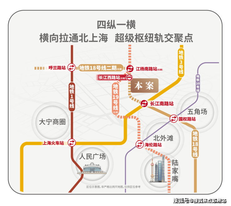 地铁18号线横向拉通了原本纵向不相连的四线地铁:1/3/18/19,将北上海横向联通,成为区域轨交的交汇聚点;项目紧邻长江西路地铁站(直线距离约150米),1站江杨南路,5站复旦,7站五角场。中环线北扩段明确兑现,军工路快速路25年开工,长江西路快速路列入上海市重大工程清单预备项目,快速链通城心,随着中环线北扩段的政策明确,淞南将正式进入中环时间。未来经逸仙高架,进入南北高架、内环高架、中环高架,可快速链通南北上海;