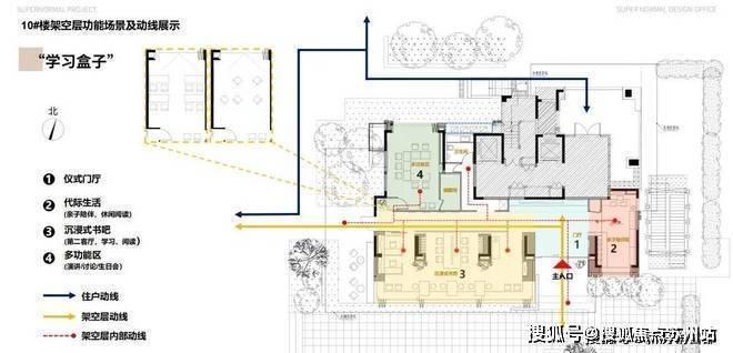 结合架空层,可以形成下沉的草坪包厢,可作为儿童室外的学习阅读场所;或成为室外嬉戏的娱乐空间;甚至是用作社区露营地等,满足各种生活需求。
