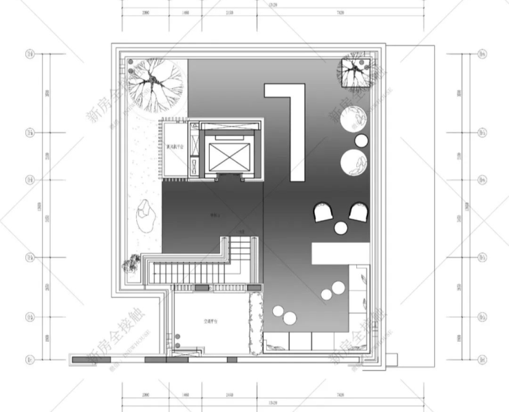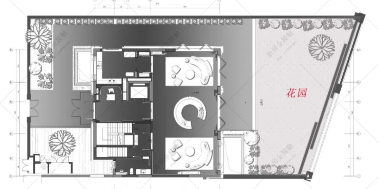 露台呈现了另一个舒适的休闲区域,通过区域感的塑造,沉浸式社交体验,让空间的平面布局与组成元素相互对话,满足动与静、开放与半开放的功能需求。