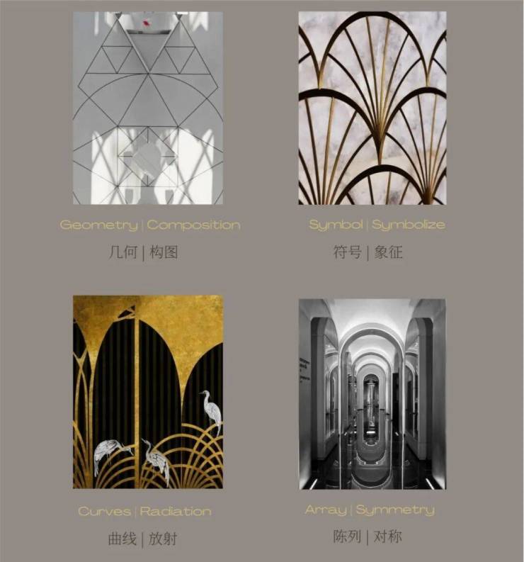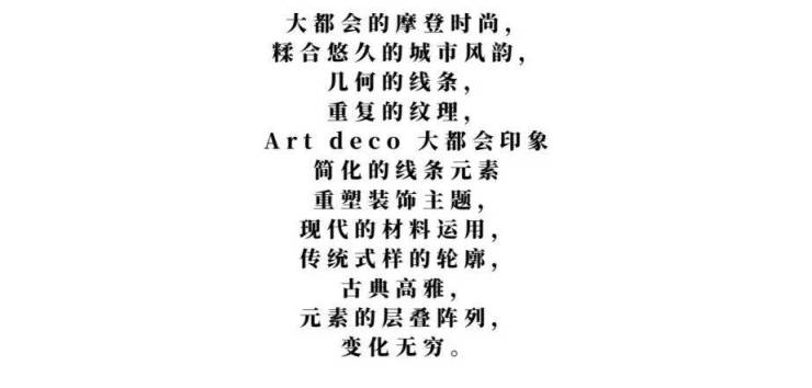 贵族的古典仪式感,现代的手法演绎,以ArtDeco的装饰主义美学塑造空间的美学基调,优雅、矝贵、华丽而沉稳。城市文化与空间设计深度交融,呈现一场现代设计语境下海派奢华的流动盛宴,一座永恒的「摩登时光会客厅」。