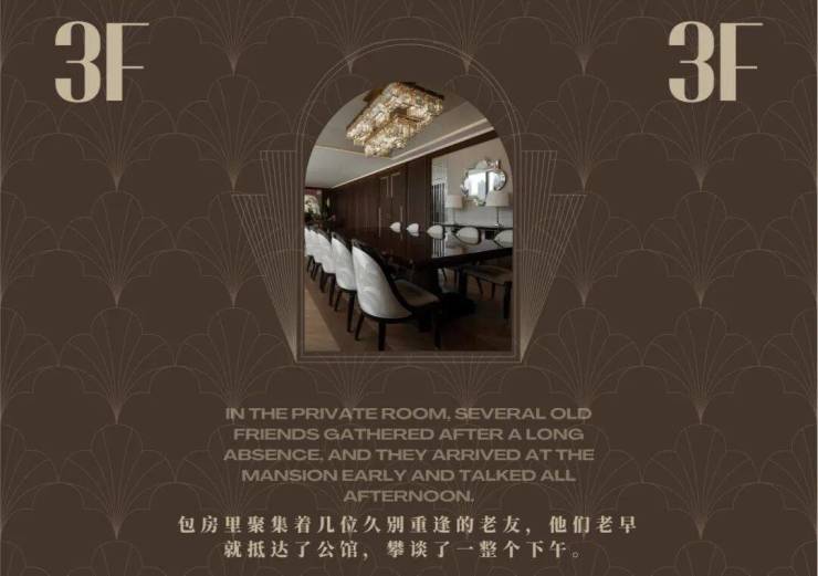 私宴区将材质细节与配色尽显摩登与古典之美,谱写奢华与时尚感。夜幕降临,空间也进入另一番温馨、私密的聚餐气氛,酒廊与私宴,城市夜晚里的烟火气息,由空间一点点诉说。