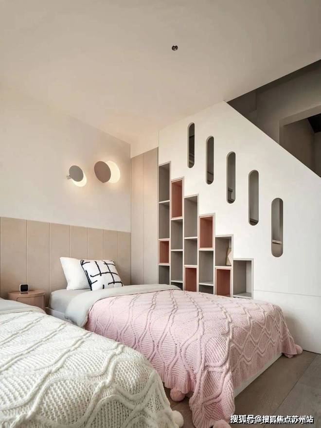 儿童房,设计师没有采用传统的 “一个房间” 概念。他们认为家应该包容所有人,不管是大人还是小孩。父母也不该什么都替孩子决定。所以,家里专门给孩子打造了一个专属空间。