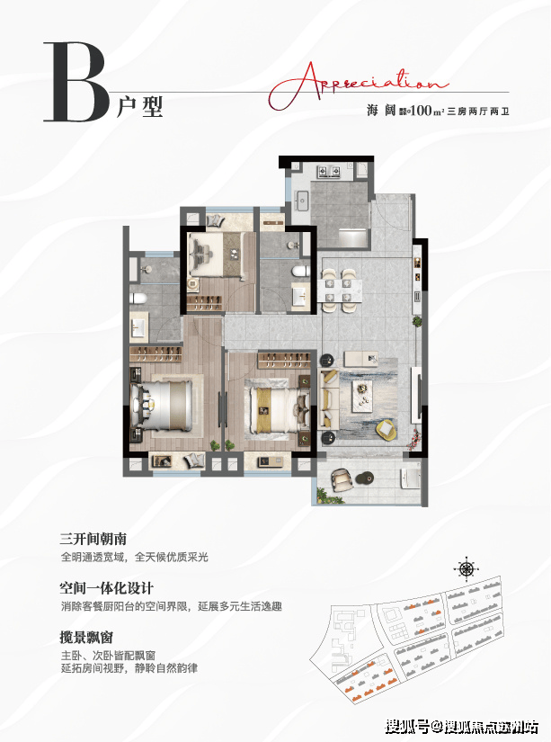 上实•听海推出了全生命周期户型产品,以空间一体化的设计,消除一定的空间界限,用更科学的空间尺度诠释改善人居的可能性,更以全飘窗设计,更好的感受超大海景界面带来都市难寻的瞰海居住体验.