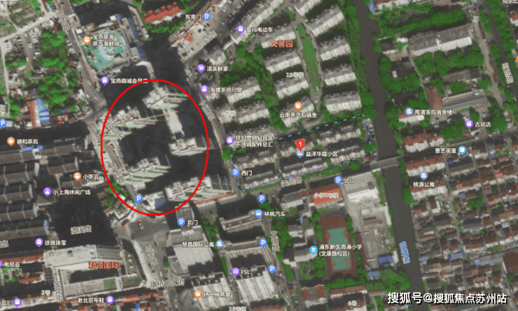 溢泽华庭位于周浦镇周市路与观岳路交界,宝燕商城南侧,一期是2017建成的动迁房,已交付入住,此次在售的二期位于一期西侧。