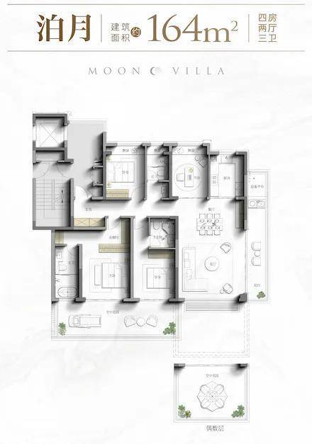 先看四代洋房,约162/164㎡,全四房起步,1梯2户设计,4房2厅3卫。