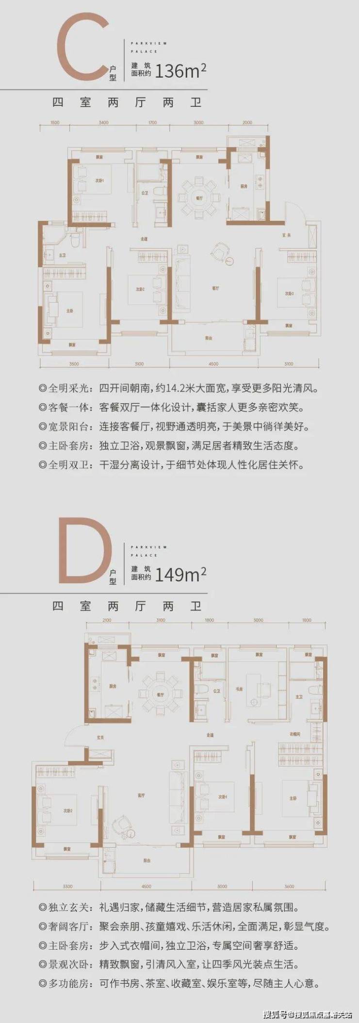 建面约165㎡奢境户型,南向四开间面宽可达约16.2m,约6.2米宽厅连接宽幕阳台,突破性尺度设计,带来通透的全景视野,一眼望向城市自然与繁华,居住于此,大平层的尊崇奢居体验油然而生.