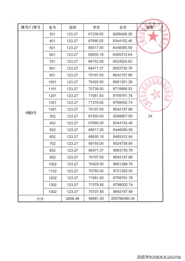 项目一房一价表▼