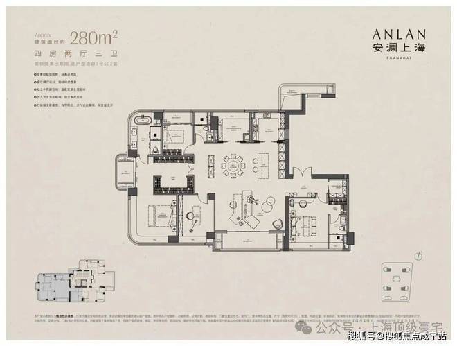 建面约280㎡,总价4300-5600万,折算单价15.3-20万元/㎡