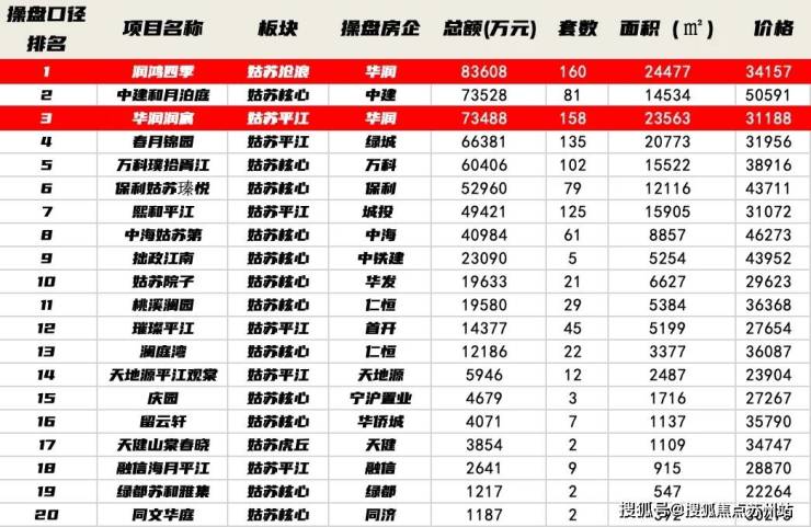 1-10月,姑苏区累计项目销售中,华润操盘的项目项目分别获得第一和第三。
