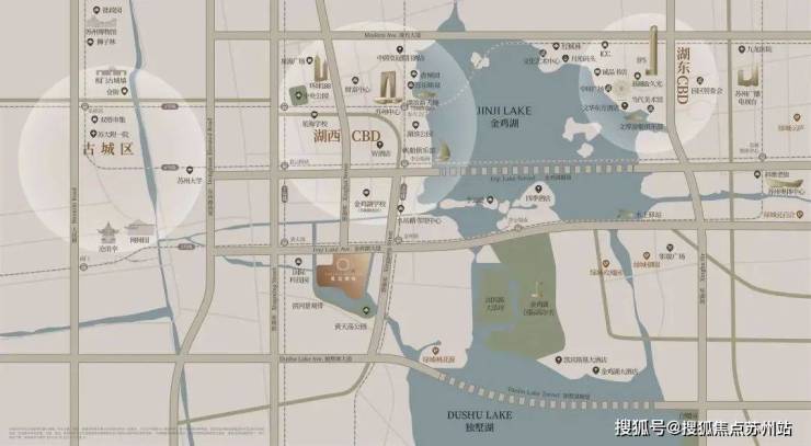 坐揽金鸡湖与独墅湖城市地标、商业旗舰、城市公园、五星级酒店、文化剧院等繁华盛景,苏州中心、东方之门、中环广场等地标配套环湖而立,奢享开放包容的国际滨水生活圈。