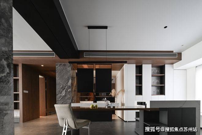 岛台与餐桌的组合是极致的简约,满足日常功能的同时,让人把注意力集中在对美食和生活烟火气的感知上。