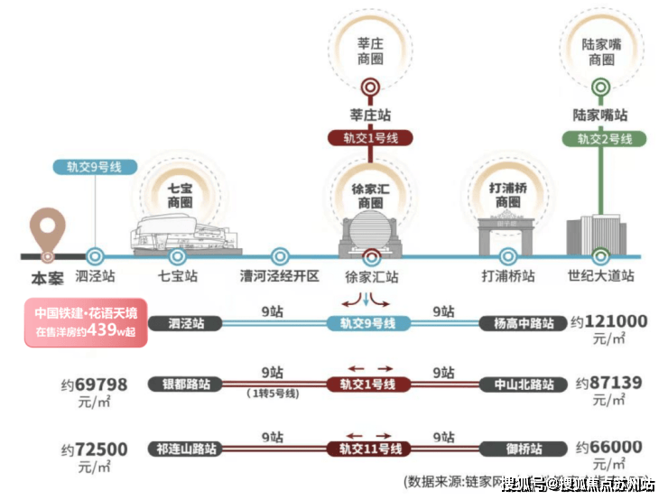相比于同价格段的新盘来说,从泗泾站出发不用换乘即可轻松直达市区,就拿徐家汇来说,单程的用时大约35分钟左右。