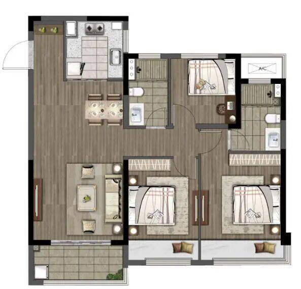 约113.9㎡3房2厅2卫,边户,三开间朝南,户型方正,大进深阳台,采光充足,南北通透,房间均带飘窗,主卧套房设计,空间充裕,自带独立卫浴。