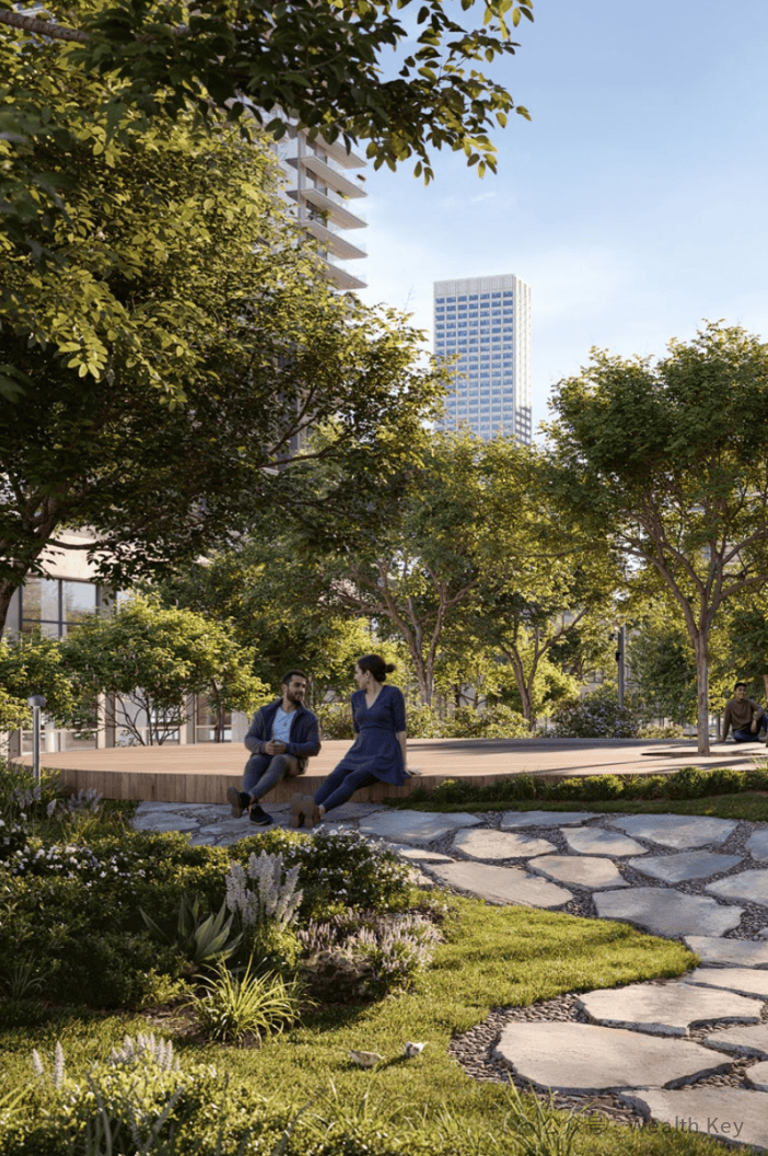 贯穿社区的小溪以轻柔的流水敲击出美妙的生活节奏,这里不仅是一个提供1-3居室的现代生活社区,更是一个配备了花园景观的休憩放松场所。