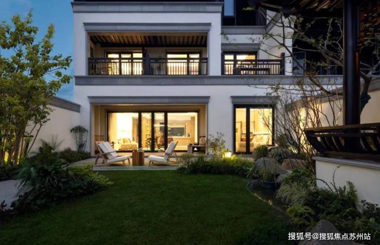 客厅与花园相连,内外相通的设计,让生活空间不再局限于屋檐之下,而是向花园空间延伸,与自然融合。一方花园中,纳藏生活万千诗意,抬眼可见日月星辰,垂眼即见诗意满园。