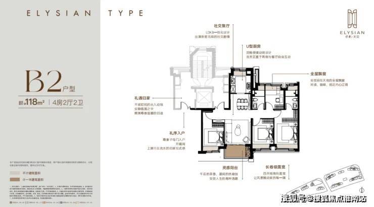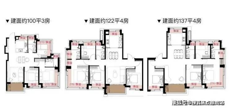 每个户型至少6个飘窗,边套更是约270°转角瞰景.