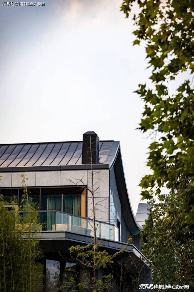 建筑的屋顶采用了非常东方的人字坡顶。通过大面积落地玻璃窗设计,模糊空间的边界感,建筑内部与外部协调融合,在获得充沛光线的同时,视野可以以更大的广 度左右扫视,将更多风景迎入室内来。