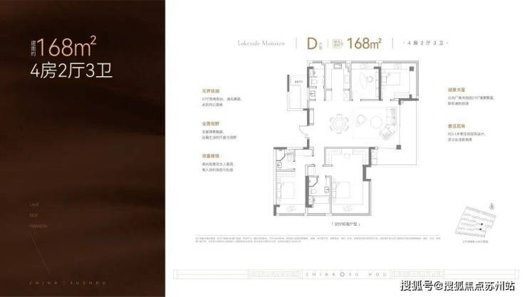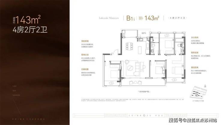 户型亮点: 270°超大转角观景阳台,视野无敌 主卧270°超大观景飘窗,采光极佳 中西厨岛台&专属家政间,生活更便捷 双入户动线/室内小玄关/主卧小家化/多套间设计,私密性更好 IMAX豪华方厅+270°转角观湖阳台,生活品质提升