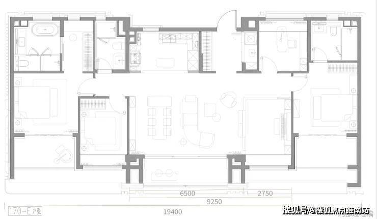 保利誉滨江推出市场罕见的170㎡六开间户型,总面宽近20米.