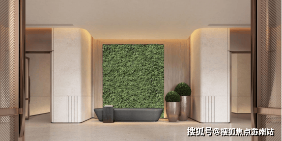 B2层单元大堂,绿植背景墙巧妙融入,为现代简约的空间注入盎然生机,营造自然与人文的和谐共鸣。