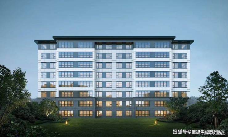 ● 建筑外立面,则沿用经久不衰的三段式立面,以新中式建筑风格表现轻奢感建筑形态; 顶部的金属挑檐,主体搭配冷色调的白+灰配色真石漆和大面积玻璃,更加凸显了建筑的细节美与颜值。