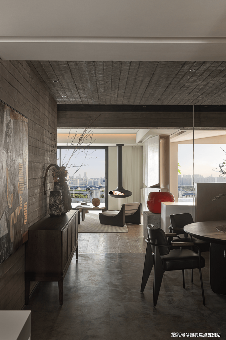 项目是一个300多平的平层住宅,望山而居,坐瞰城市山林,可短暂远离喧嚣,自在而闲适。