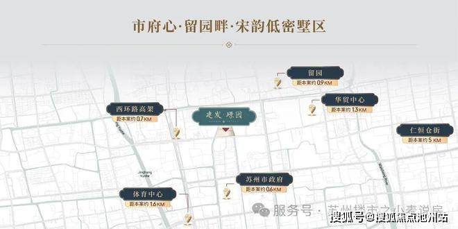 文化心:坐落于古城文化保护发展轴,步行约900米即可抵达世界文化遗产——留园。山塘街、西园寺、寒山寺、虎丘等名胜环伺左右,千年文脉触手可及。选择在这里置业,就是选择了一种浸润于 苏州古城文化 的 低密墅居生活。