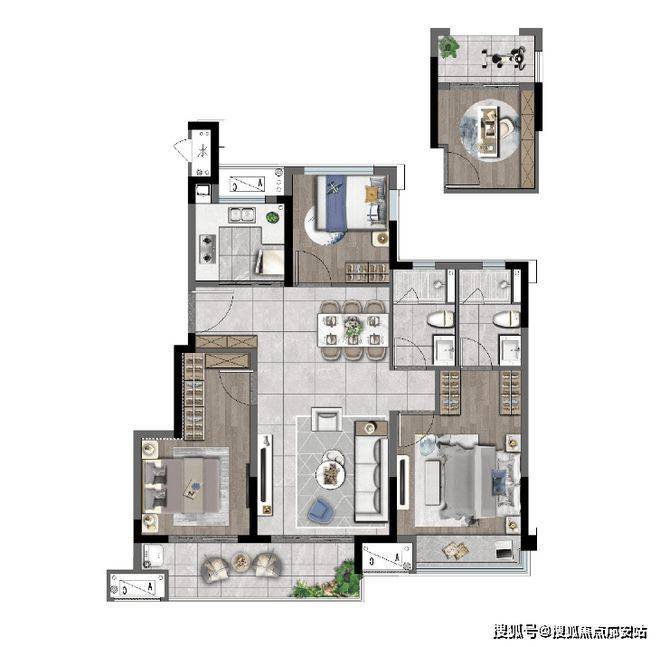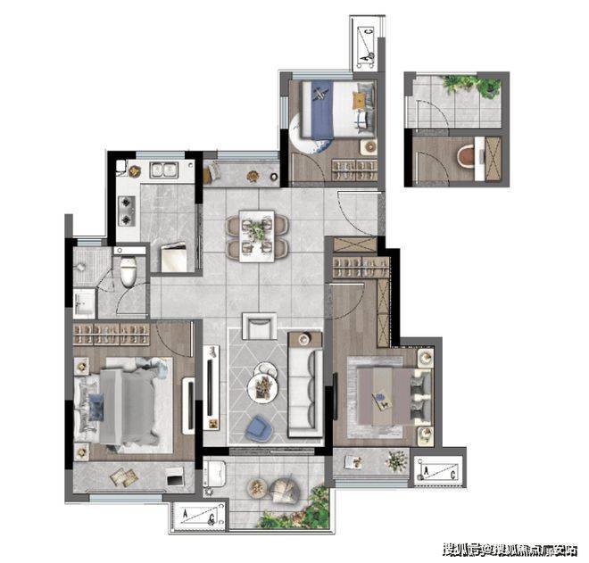 颠覆性品质爆款三房,充分考虑空间利用,巧妙打造,整个空间没有浪费一丝面积。每一个房间都物尽其用,让阳光铺满每一寸生活区。