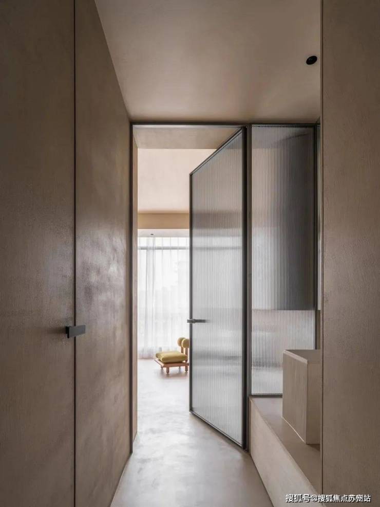 增加收纳容量。活动室选用通高玻璃门联窗设计,长虹玻璃遮人不遮光,最大限度弱化走道的压抑感,增添采光。