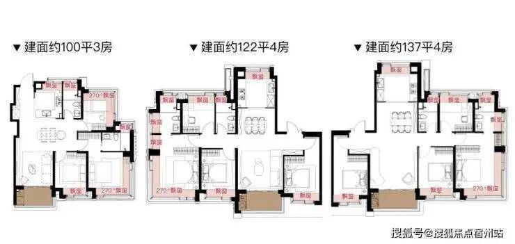 每个户型至少6个飘窗,边套更是约270°转角瞰景.