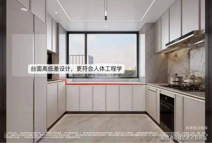 见微知著,厨房采用人体工学高低台设计(大户型),将烹饪区设置低于水槽区,当您掌勺翻炒时,微微下沉的灶台高度,恰好契合手臂自然下垂的舒适角度,让烹饪的动作更行云流水.