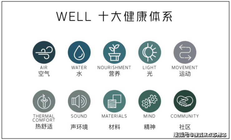通过WELL10大数据化测量、认证和监测空气、水、营养、光、健身、舒适和精神等建筑环境特征,将健康无缝嵌入到住区中,润物细无声,可持续的提升居者健康和幸福。