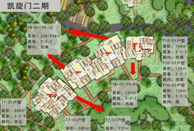凯旋门户型设计多样,满足不同业主需求:社区总共有2居-4居,135-345平14种正规户型,2居室面积135-182共4种户型;3居室189-318平共4种户型;4居室280-345平6种户型。还有顶层复式、下跃以及联排别墅。层层有阳台,户户落地窗,大部分户型南北通透观江。