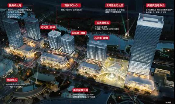 并且旁边有两个公园、水系景观,现在的人在室内环境里待久了,也都比较喜欢在户外商业逛逛;最核心的是人堆里的芯光里,上面规划的好几栋公寓,你想想未来区域内进驻这么多大小公司,很多员工在哪儿住?还有些创业型的公司,可以办公,这些客群的消费基本上80%都在楼下的商业街解决了——芯光里本身就有这么些消费客户、雷打不动的,所以这个产品规划是让我在这次首开就拿下的关键点。