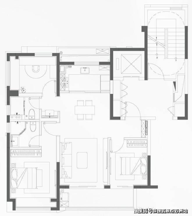 上海·华发海上都荟,建面约99㎡的F和G户型都是市面上备受认可的三房两厅两卫得飞机经典款户型。