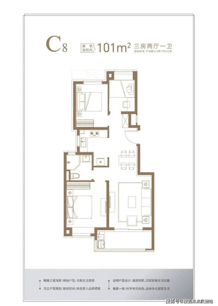 高层产品,包括建面约103-106平3房2厅2卫户型,几个主力户型做的非常不错,迎合了不同需求的购房群体。