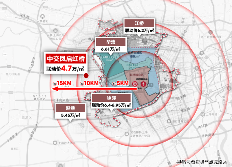 首先,根据《青浦 2035 规划》,将徐泾、赵巷、凤溪定位为 3 个商业商务集聚区。与徐泾 同样是大虹桥的一线辐射板块,房价却比徐泾和华漕要低约2万/㎡+!