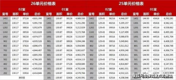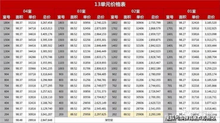 一房一价表如下
