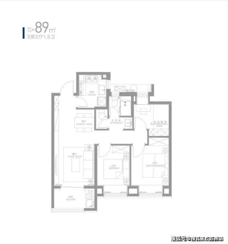 约89㎡三房,1.5卫设计为临港首创,在总价可控的基础上兼具实用性。