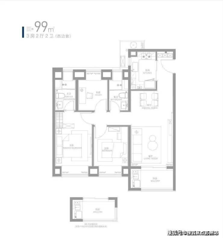 约99㎡三房,全卧室+卫生间均带飘窗,清风光影景色宜人。