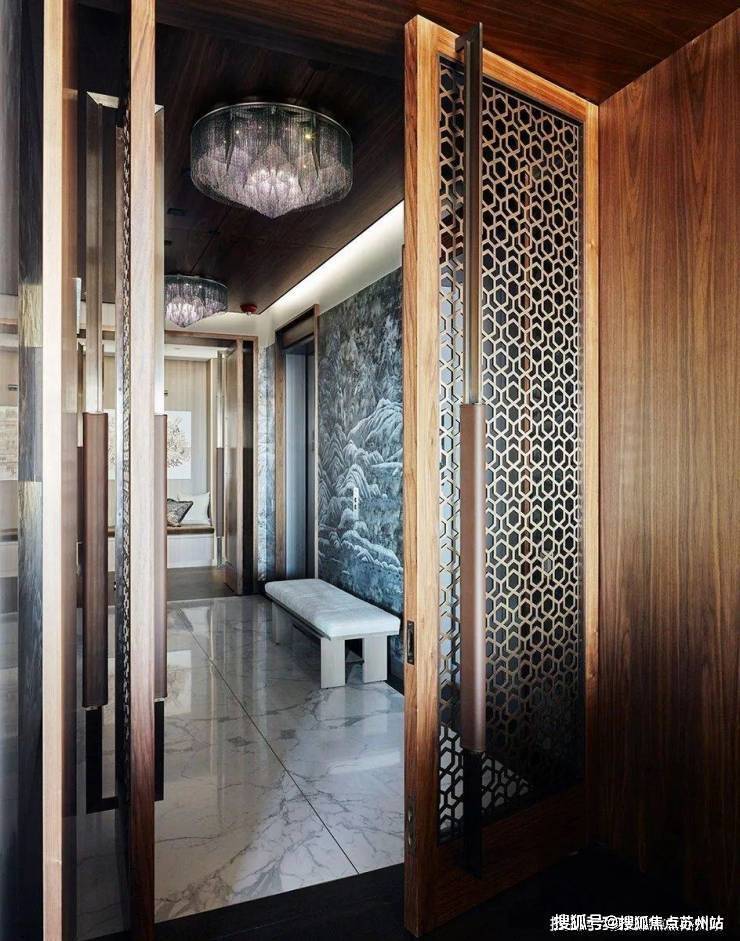 百分之百的优雅对材质的要求异常严格,而胡桃木的材质恰好强调了空间的高级感,利用老式LaVerne茶几、KellyWearstler的椅子和FortStreetStudio的地毯让人仿佛穿越回五十年代的复古时空。