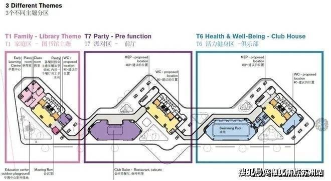 三幢公馆分别配备了不同主题配套设施,三楼顶层设有 800㎡ 环绕阳光跑道。