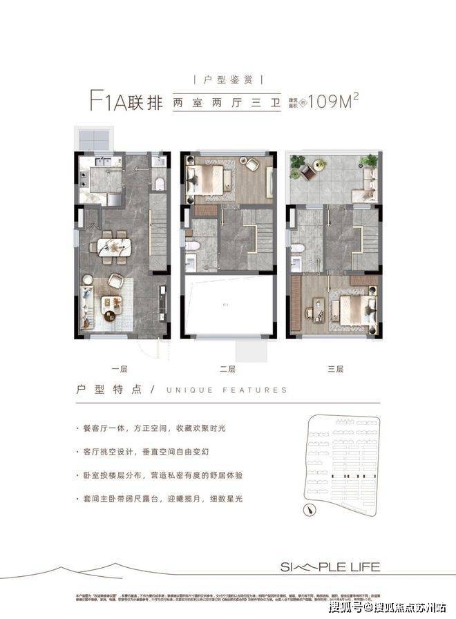 产品介绍:推出建面约106-109㎡联排叠墅,总价约380万起
