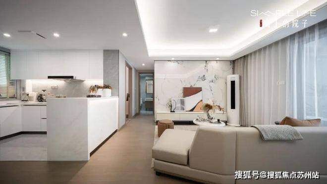 厨房是L型布局,有意思的是在侧边做了一个岛台,这个设计在约75㎡的户型中非常少见。(售楼处电话☎:400-8787-554,价格,户型图,地址,电话,样板房,周边配套,项目介绍)