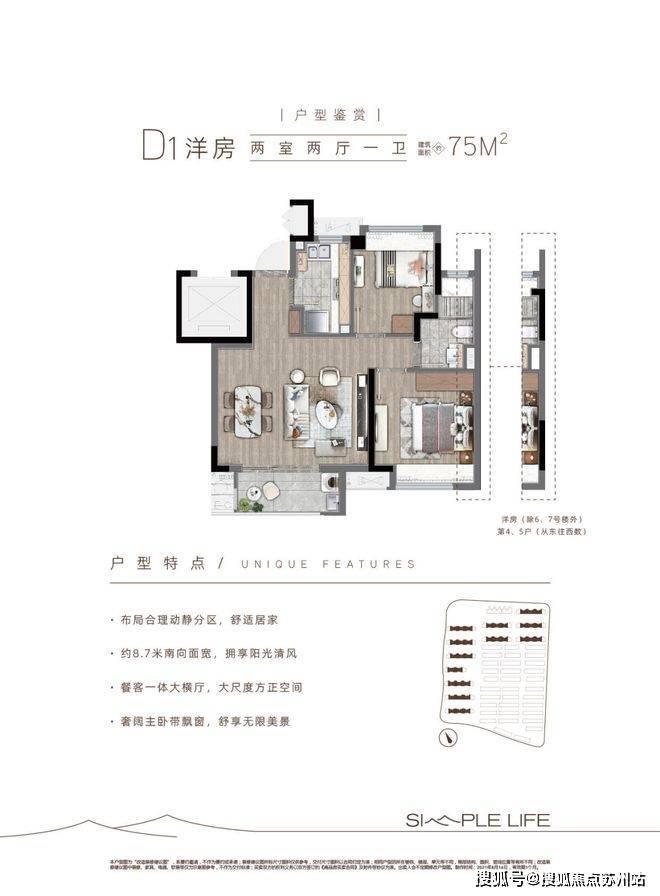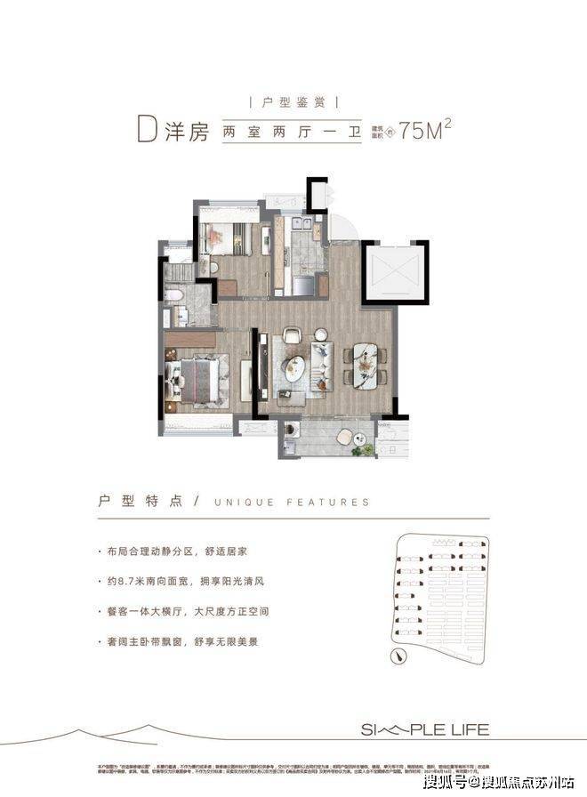 建面75m²洋房样板间(售楼处电话☎:400-8787-554,价格,户型图,地址,电话,样板房,周边配套,项目介绍)