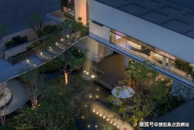 震撼瀑布水幕自建筑二层倾泄而下,伴随着轰鸣的水声与飘渺的水雾,自然而然的将建筑与园林融为一体,空灵之境悦然于心。